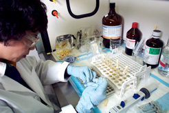 Scientists usually test for chemicals in samples of blood and urine. There are only a few labs that can do this testing.